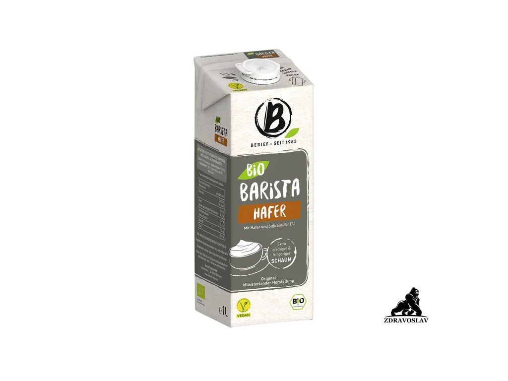 Berief Nápoj ovesný BARISTA BIO 1 l je rostlinný nápoj, který si nejvíc užiješ v kávě. Má příjemně jemnou ovesnou chuť a je navržený tak, aby vytvořil krémový dojem a dal se pohodlně použít do oblíbených kávových nápojů. Hodí se na domácí cappuccino, latte i ledovou kávu – a využiješ ho i v kuchyni, když chceš snídani nebo smoothie zjemnit.