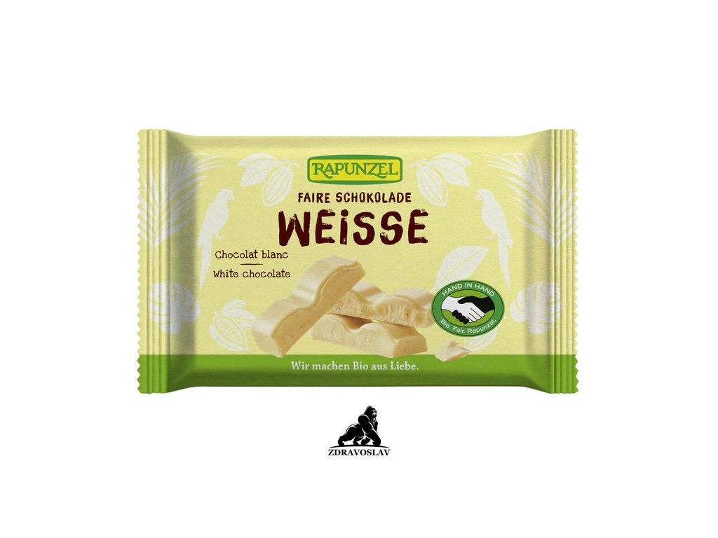Rapunzel BIO bílá čokoláda je lahodně jemná a sametově krémová. Je vyrobená pouze z několika kvalitních ingrediencí: kakaové máslo, plnotučné mléko (28 %), přírodní třtinový cukr, slunečnicový lecitin a pravá Bourbon vanilka.