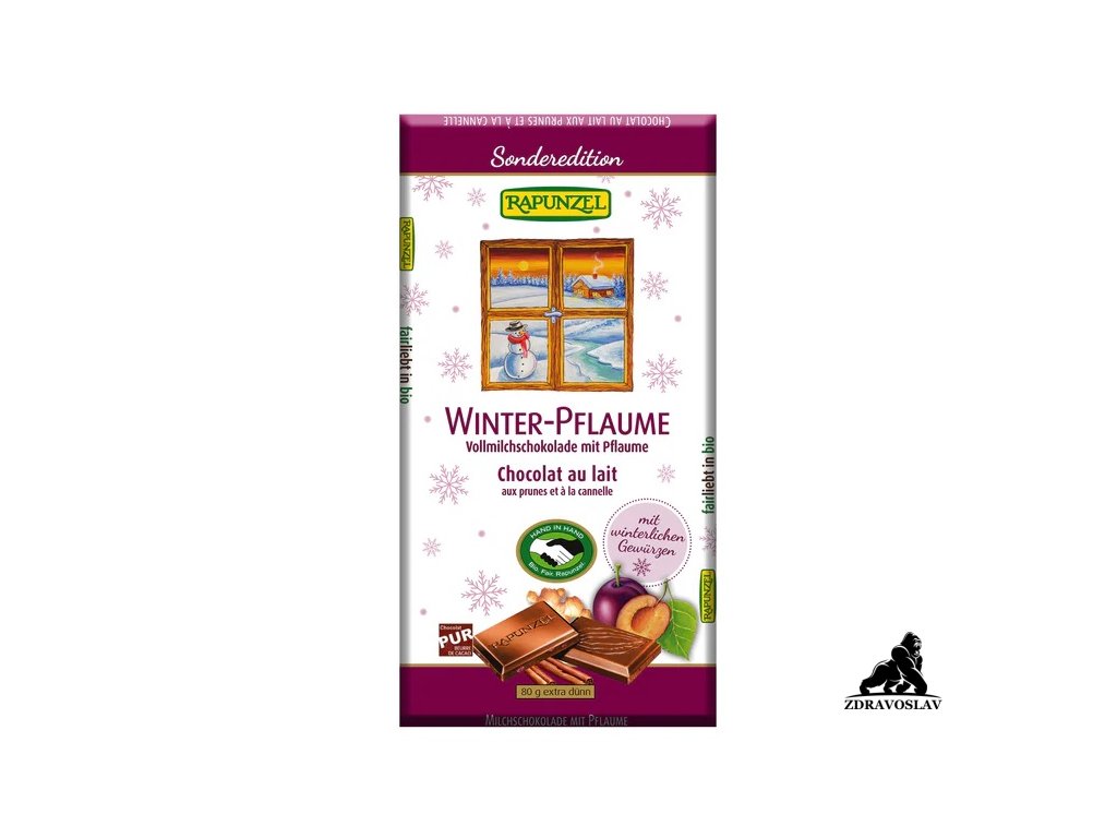 Rapunzel Čokoláda mléčná zimní se švestkami BIO 80 g