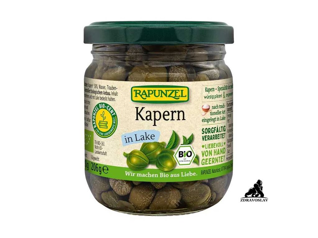 Kapary BIO RAPUNZEL ve slaném nálevu představují vybranou delikatesu ze středomořské kuchyně. Jedná se o poupata kaparovníku z ekologického zemědělství, naložená v jemném vinném octu a mořské soli, které jim dodávají výraznou, ale příjemně vyváženou chuť.