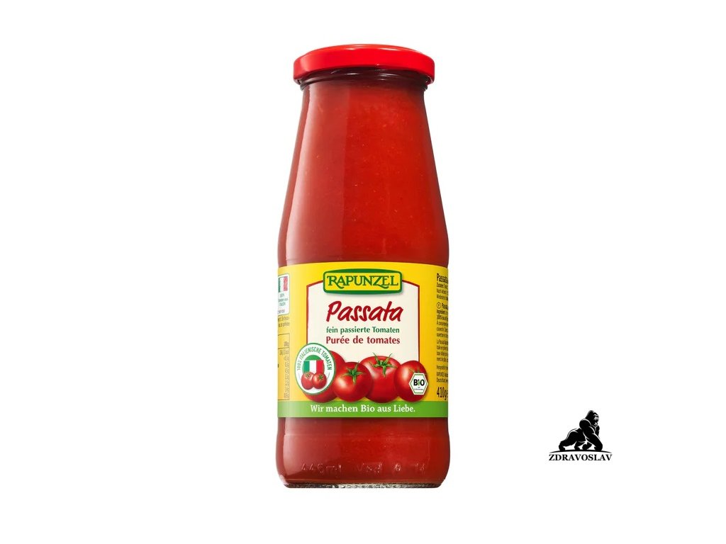 Rapunzel drcená rajčata passata BIO 410 g představují praktický základ pro přípravu domácích omáček, polévek, pizzových nebo těstovinových jídel. Rajčata pocházejí z kontrolovaného ekologického zemědělství a jsou sklízena v plné zralosti, poté šetrně drcena a pasterována – bez přidané soli, cukru, koření či konzervantů.