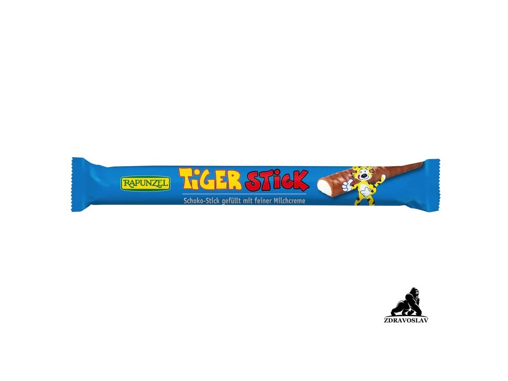 Rapunzel Tyčinka Tygr BIO je lahodná kombinace jemné mléčné čokolády a bohaté mléčné náplně, vyrobené s ohledem na kvalitu i chuť. Obsahuje minimálně 37 % kakaové sušiny v čokoládě a 72 % mléčné náplně, což jí dodává jemný, krémový charakter a výraznou chuť mléka . Je oslazena přírodním třtinovým cukrem (rapadura) a obohacena o autentickou Bourbon vanilku – bez umělých aromat a s ingrediencemi z ekologického zemědělství.