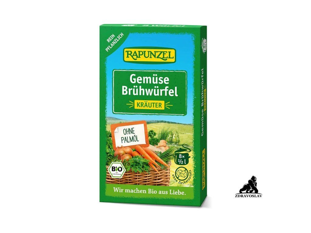 Vývar zeleninový bylinkový v kostce BIO RAPUNZEL je skvělým pomocníkem do každé kuchyně. Jemně vyvážená kombinace mořské soli, bambuckého másla, zeleniny a aromatických bylinek dodá vašim pokrmům lahodnou chuť a vůni. Obsahuje kvalitní suroviny z kontrolovaného ekologického zemědělství – mrkev, pastinák, cibuli, rajčata, pórek i celerovou nať, doplněné o petržel, libeček, majoránku či bobkový list.