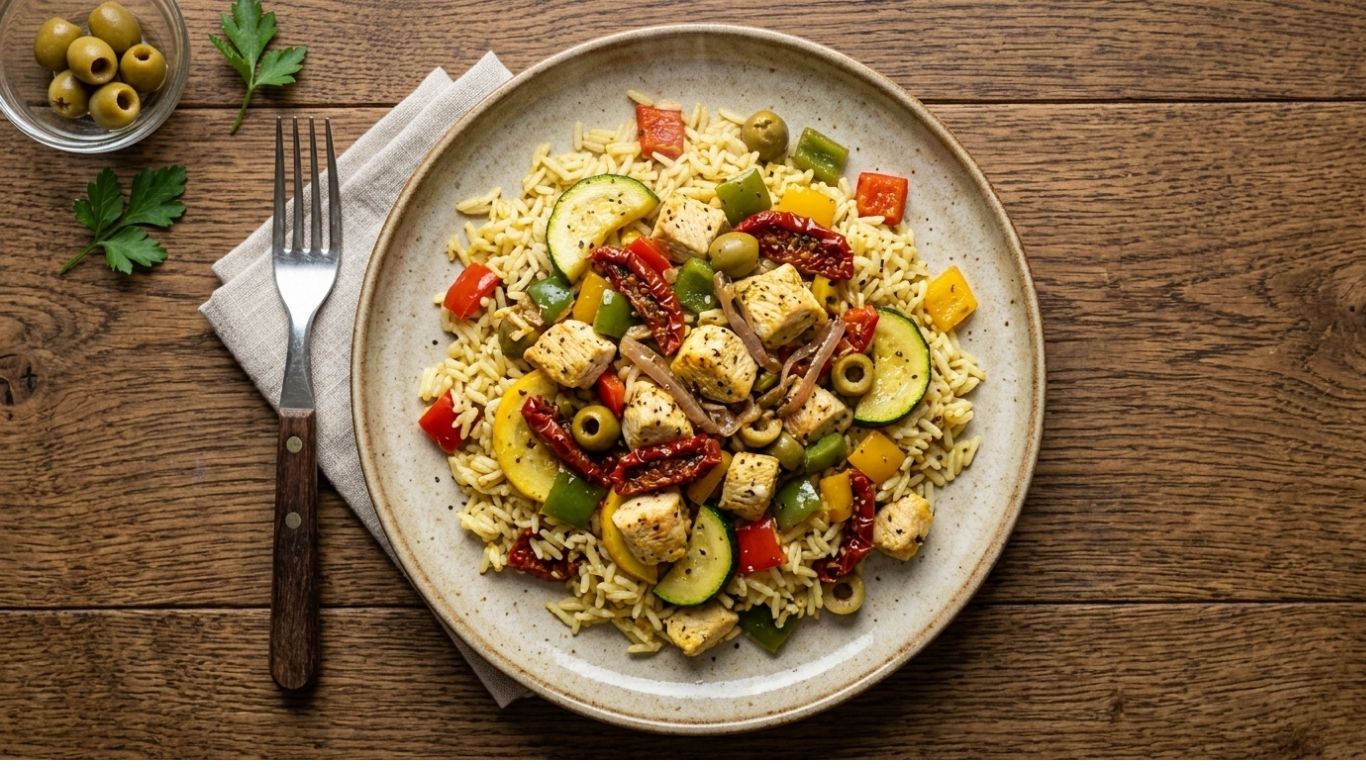 Hledáte recept na sytý oběd, který připravíte do 20 minut a chutná jako z italského bistra? Tato kombinace šťavnatého kuřecího masa, aromatických sušených rajčat a čerstvé zeleniny je trefou do černého. Díky správně zvolené rýži získáte pokrm, který je lehký, výživný a plný barev.
