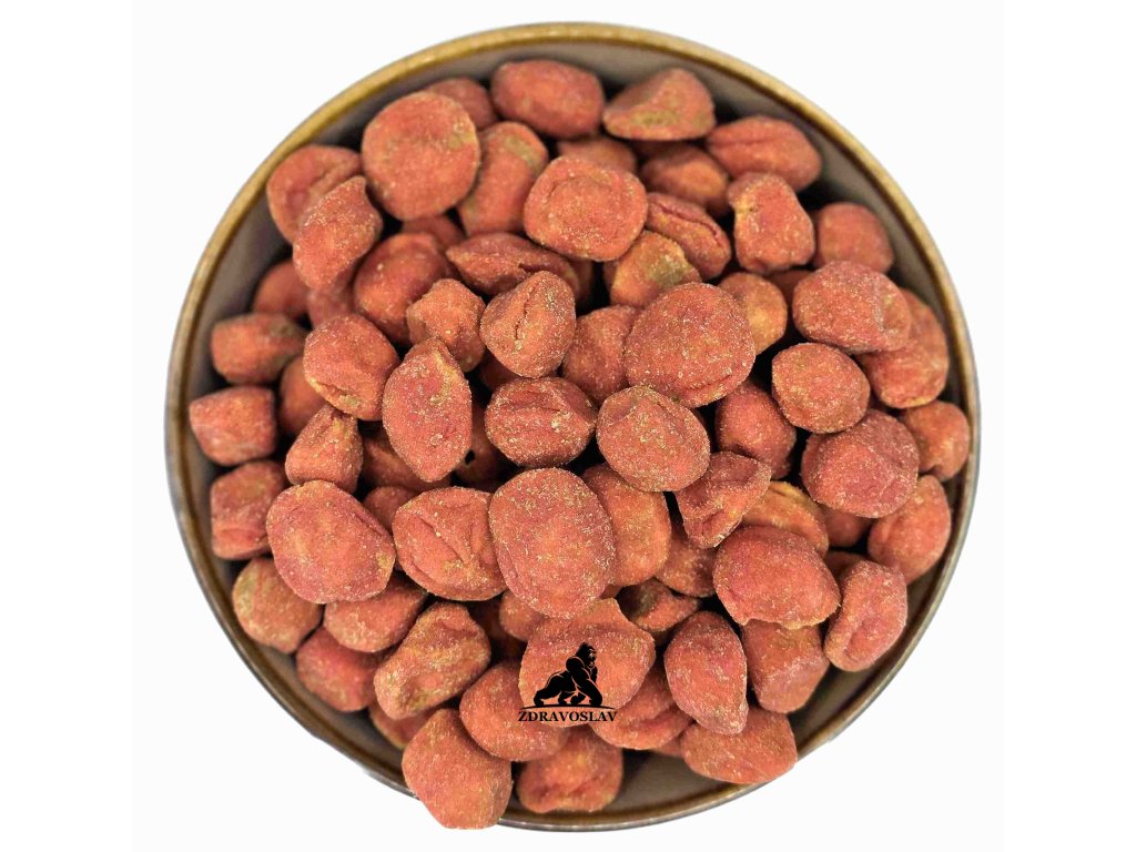 Představujeme vám naše Arašídy ve Wasabi - Červené, jedinečnou kombinaci pikantního wasabi koření a slaných arašídů, které vás ohromí svým nezapomenutelným chuťovým zážitkem. Tyto arašídy jsou vyrobeny z nejkvalitnějších surovin a pečlivě obaleny v ostrém wasabi koření, nabízí silnou a výraznou chuť, která okamžitě pohltí vaše smysly.