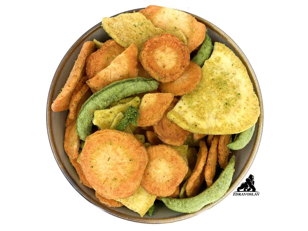 Směs kombinuje čtyři druhy zeleniny – batáty, mrkev, brokolici a hráškové lusky – které získaly úplně nový rozměr díky šetrné technologii zpracování. Zelenina se připravuje metodou vakuového smažení, což znamená smažení při nižší teplotě (přibližně 70–95 °C) a sníženém tlaku. Díky tomu si jednotlivé kousky lépe zachovají barvu, tvar i přirozenou chuť, a zároveň jsou krásně křehké a křupavé.