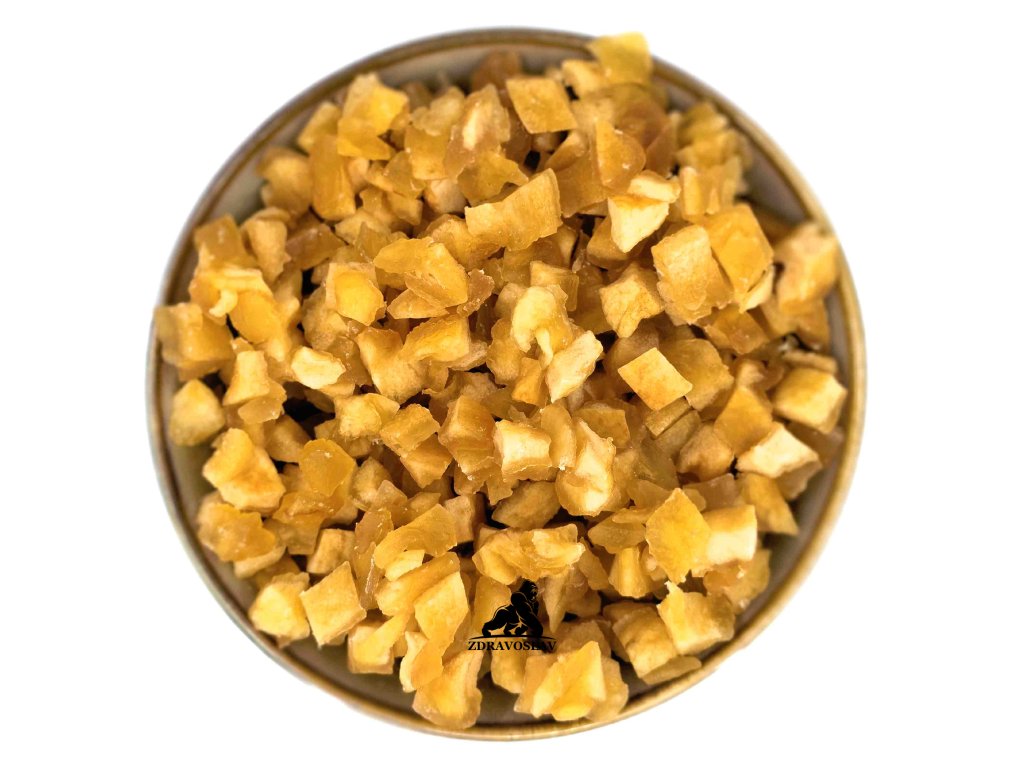 Složení: Sušená jablka kostky 100% (neobsahuje oxid siřičitý a cukr).