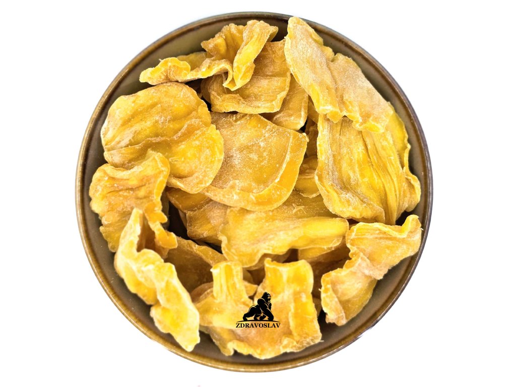 Složení: Jackfruit sušené plátky 98, 97%, Kyselina citronová 1%, Oxid siřičitý.