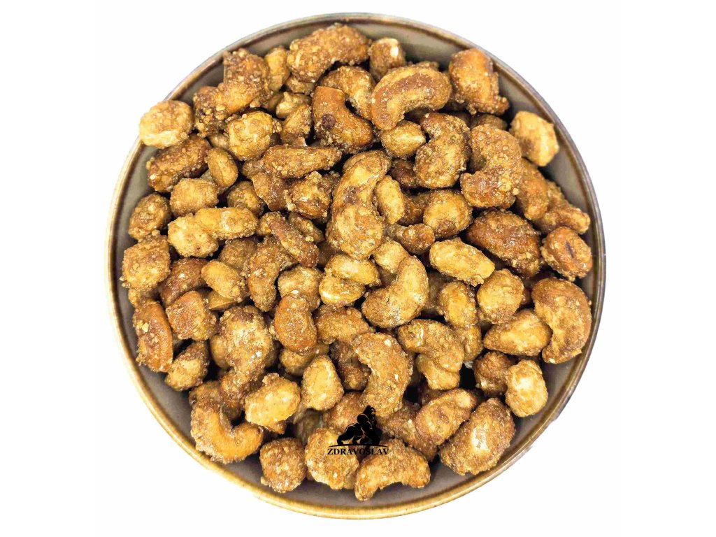 Složení: Arašídy 38%, kešu 38%, cukr 18,5%, med 3,5%, mořská sůl 2%.