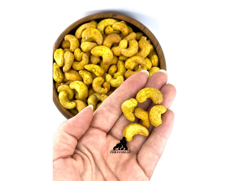 - Exotická chuť kari: Oříšky jsou ochucené aromatickým kari kořením.