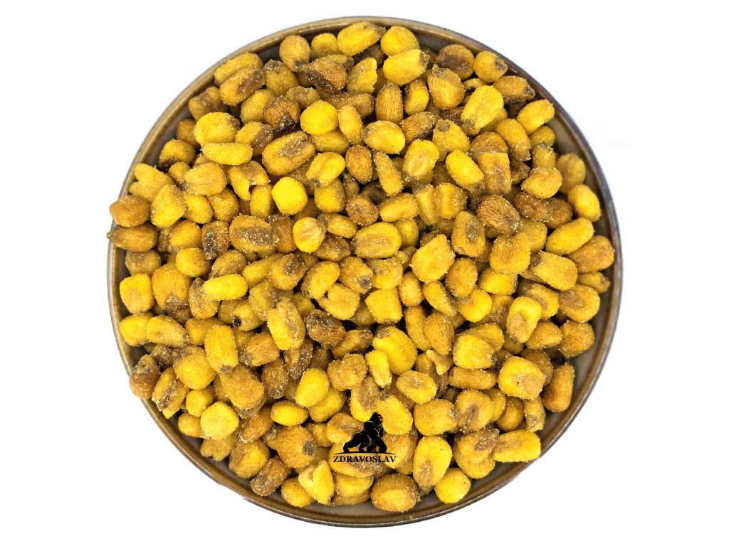 Pečlivě vybraná kukuřičná zrna jsou opečená dozlatova na kvalitním slunečnicovém oleji, což zaručuje maximální křupavost. Chuť je lehce podtržena mořskou solí, která skvěle doplňuje medovou sladkost a jemnou pikantnost hořčice.