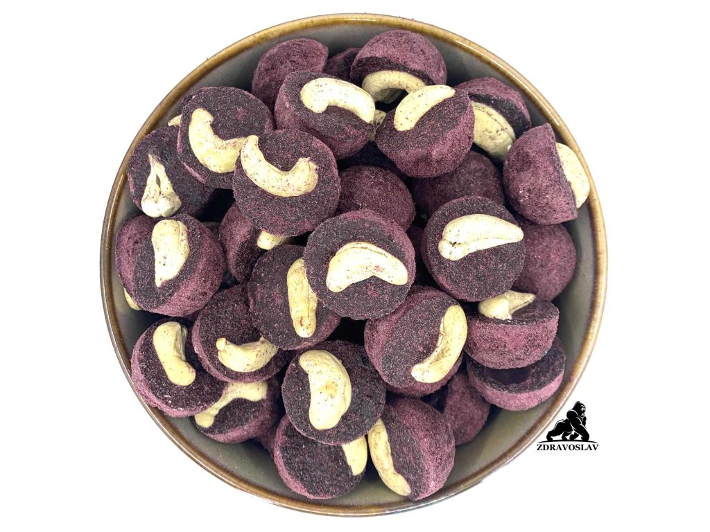 Tahle delikatesa stojí na čisté kombinaci: celé kešu ořechy v přirozené podobě (nepražené a nesolené) a jemná krusta z mrazem sušených borůvek. Bez přidaného cukru a bez zbytečností – jen plná chuť ořechů a lesního ovoce.