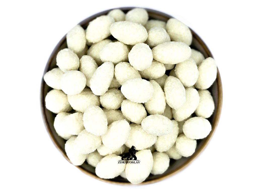 Tyto křupavé mandle jsou obalené v lahodné bílé čokoládě a posypané kokosem, což jim dodává neuvěřitelně exotickou chuť. Užijte si osvěžující chuť kokosu a krémovou chuť bílé čokolády spolu s křupavostí mandlí, a to vše v jednom soustu. Mandle Raffaello v bílé čokoládě s kokosem - chuťový ráj na zemi!