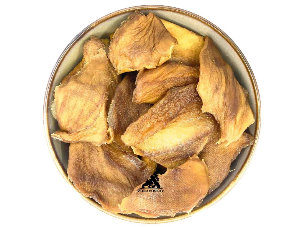 Zdravoslav Mango plátky natural z Thajska jsou sušené plátky z vyzrálého manga, které si vás získají svou intenzivní ovocnou vůní, měkkou strukturou a výraznou sladkostí. Oproti běžnému sušenému ovoci jsou plátky příjemně šťavnaté a vláčné, takže se skvěle hodí jak na samostatné mlsání, tak do kuchyně.