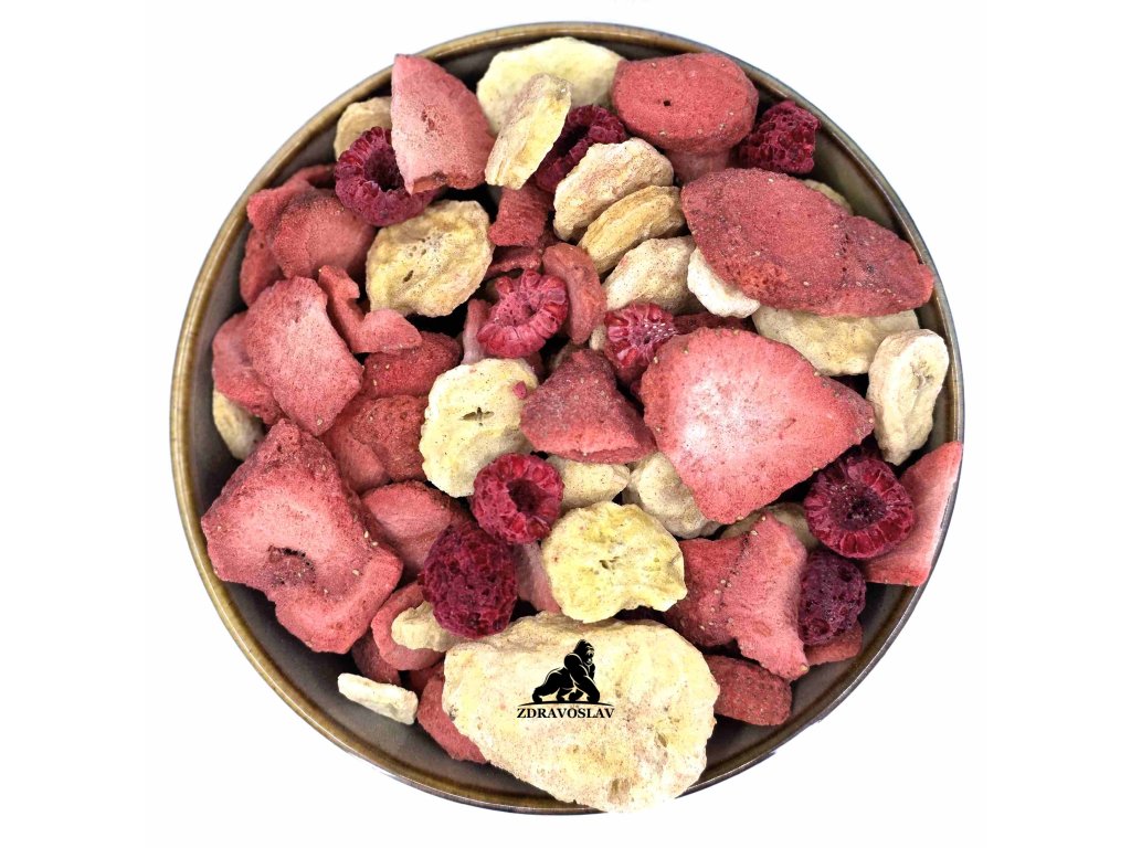 Jedinečný mix nejoblíbenějšího lyofilizovaného ovoce čeká právě na vás! Tento mix obsahuje banány, které jsou známé svým vysokým obsahem draslíku, jahody, které jsou bohaté na vitamín C, a maliny, které jsou oblíbené pro svou jedinečnou chuť. Toto ovoce neobsahuje žádný přidaný cukr ani chemické přísady, a díky šetrnému procesu lyofilizace jsou v něm zachovány většina vitamínů.