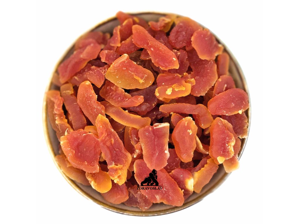 Sušená papája je tropická pochoutka, která vás okouzlí svou exotickou nasládlou chutí a připomene vám kouzlo tropického ráje. Jako rychlá svačinka je ideální volbou pro ty, kteří hledají zdravou a chutnou alternativu k běžným snackům. Díky vysokému obsahu vlákniny a betakarotenu je papája nejen lahodná, ale také prospěšná pro vaše zdraví.