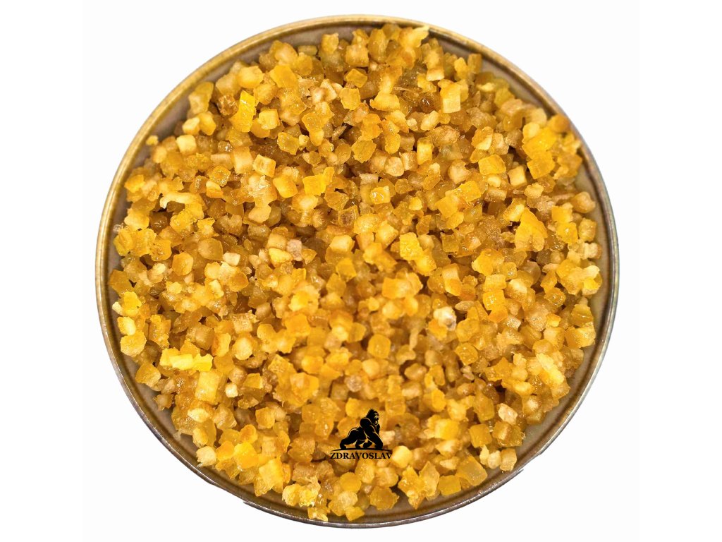 Perfektní chuť a textura. Kandovaná pomerančová kůra potěší svou vůní, intenzivní chutí a šťavnatou texturou. Kůra dodává pokrmům výraznou citronovou chuť.