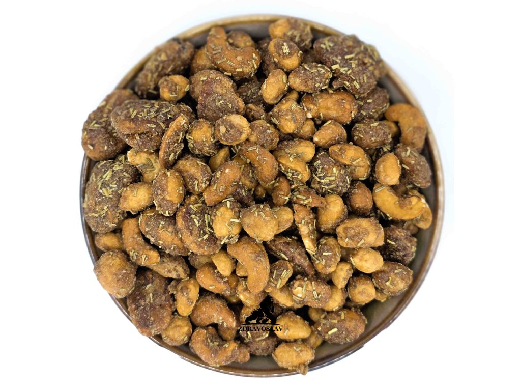 Směs ořechů s medem a rozmarýnem – dokonalá volba pro každou příležitost! Arašídy, kešu, makadamové a pekanové ořechy v harmonické kombinaci chutí. Ideální k pivu, vínu nebo jen tak na zub.