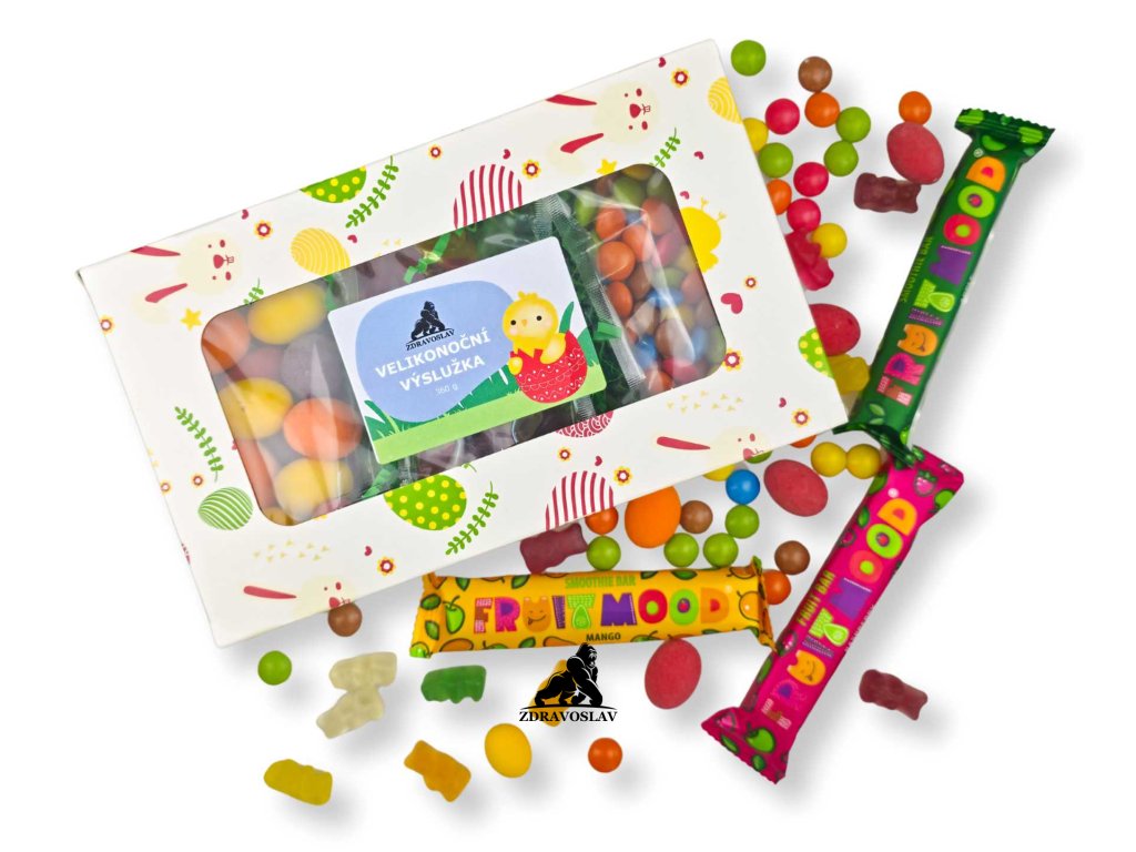 Velikonoce jsou svátkem radosti, tradic a sladkých překvapení pro koledníky. Velikonoční výslužka 360 g je připravena jako pestrý balíček dobrot, který nabízí kombinaci oblíbených sladkostí, ovocných svačinek i křupavých oříšků.