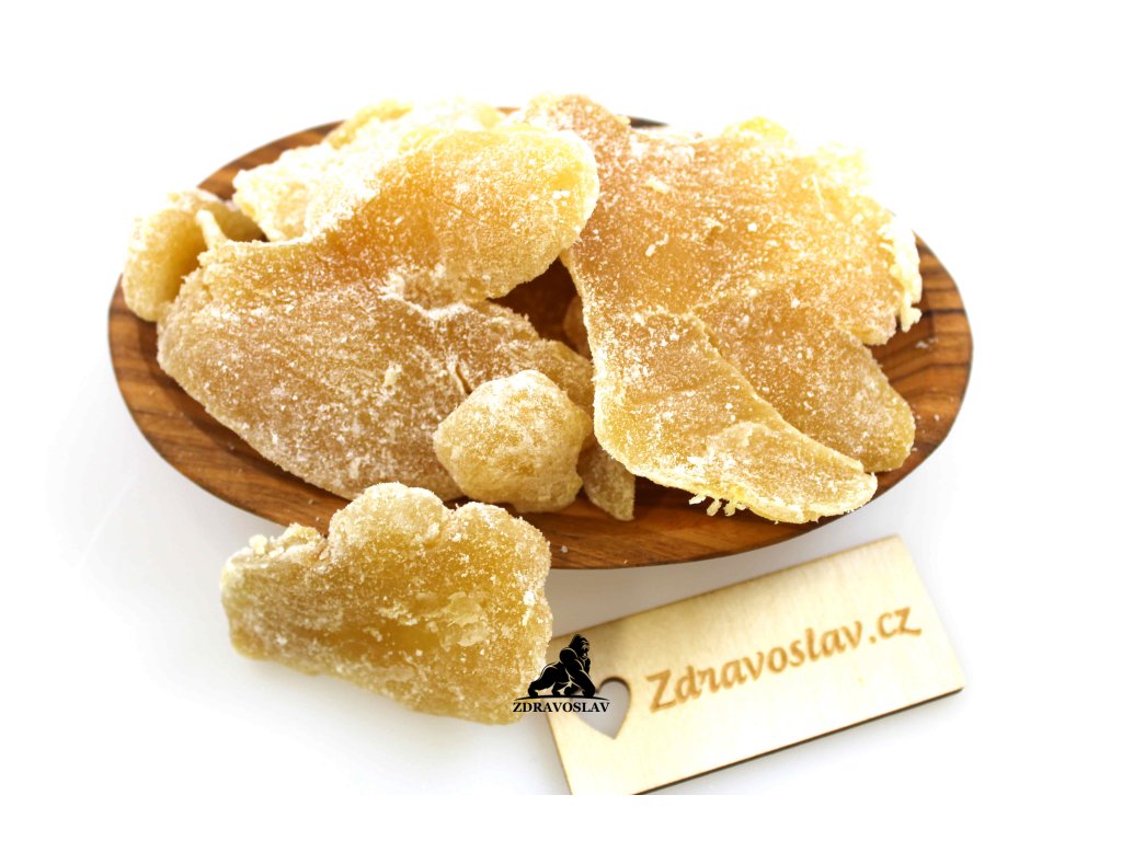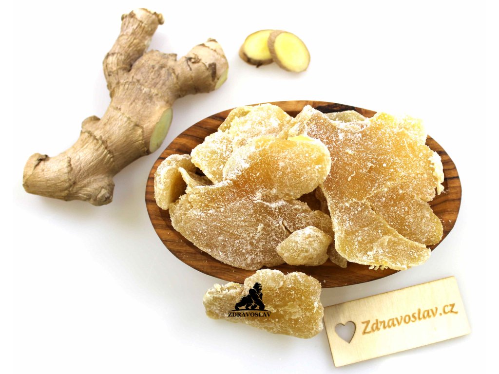 Složení: zázvor 55%, cukr, oxid siřičitý 0,01%